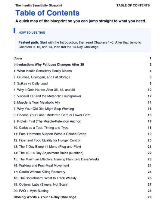 If insulin sensitivity in bodybuilding suddenly feels like the difference between steady progress and a stubborn waistline after 35, you are not imagining it. This pdf helps you understand why the same training and discipline can start producing a different response when food handling, hunger, cravings, sleep, stress, daily activity, and visceral fat begin to stack in the wrong direction.